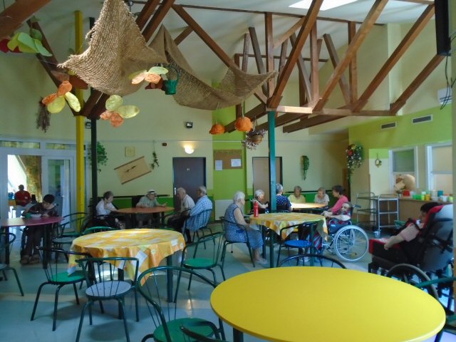 A lakók az előtérrel, fürdőszobával rendelkező önálló lakrészek egy- vagy két személyes szobáiban élnek. Együttélésük hasonlít a régi, megszokott élethez, sok közös rendezvénnyel, szolgáltatással, szabadidős programmal. A kétszemélyes lakrészek a szolidaritás elvének megvalósulását szolgálják, segítve az egymás közötti segítségnyújtást, valamint a társas életet. A napközbeni tartózkodásra alkalmas közös helyiségek lehetőséget adnak arra, hogy több kis csoport szerveződjön, csökkentve a konfliktusok számát, de elkerülve az izolációt.
