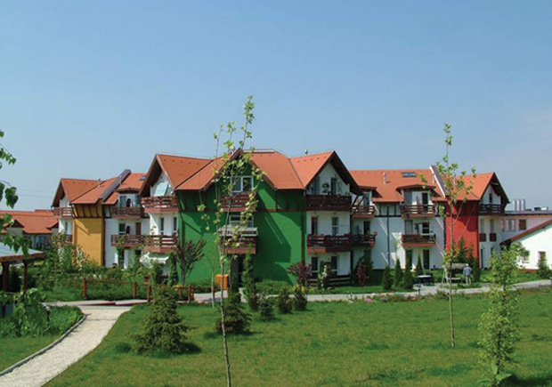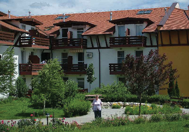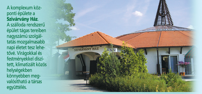 A komplexum központi épülete a Szivárvány Ház. A szálloda rendszerű épület tágas tereiben nagyszámú szolgáltatás mozgalmasabb napi életet tesz lehetővé. Virágokkal és festményekkel díszített klimatizált közös helységekben könnyebben megvalósítható a társas együttélés.